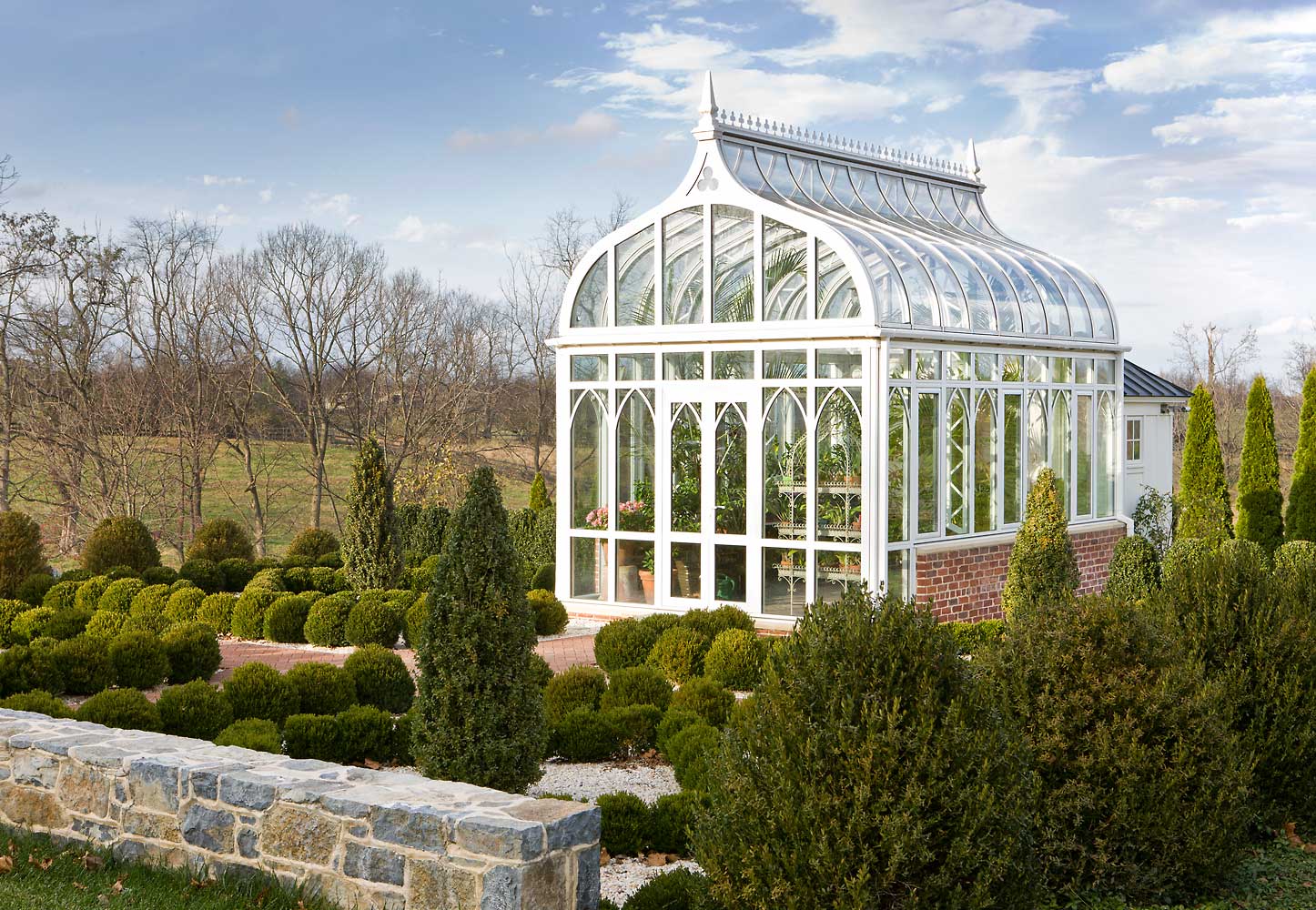 伊麗莎白將這棟佔地100英畝的農莊依照她的品味重新做了完整的安排。屋外,喜愛園藝的伊麗莎白規劃了一座義式花園和菜園,還為了她的植栽們建了一間淡雅的白色玻璃溫室。而屋子本身,她的建築師將二層樓的房舍向旁邊延伸,在側翼新建了廚房與早餐室。從建築外觀看上去,深色屋頂與白色屋身的搭配若少了花園襯托,並不怎麼起眼,然而,千萬別被平凡的表象所蒙騙,當你踏進屋內,會發現截然不同的風景。