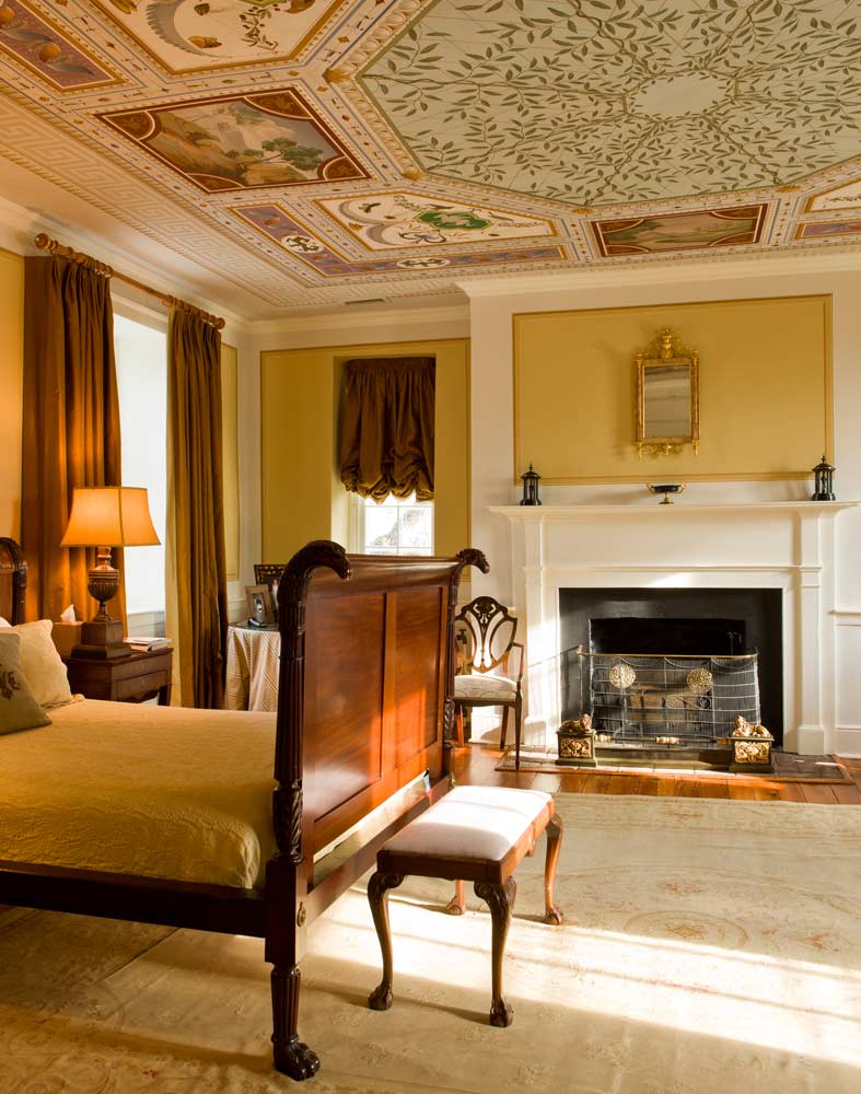 最幸運的地方,是在買下這棟莊園後,屋中許多古老的木製家具也就如此順理成章地承接下來,省下了不少費時費力的裝潢工作。伊莉莎白夫婦也不打算破壞老屋的骨架,屋內多維持原先的結構,除此之外,只剩修飾的部分了。他們遇到最大的難題,想必非空調安裝工程莫屬,也因為這項施工,不得不破壞原先仿文藝復興的壁畫,但伊莉莎白找來了兩位佛羅倫斯藝術家,憑著想像,重新繪製出假以亂真的鑲板與牆面。
