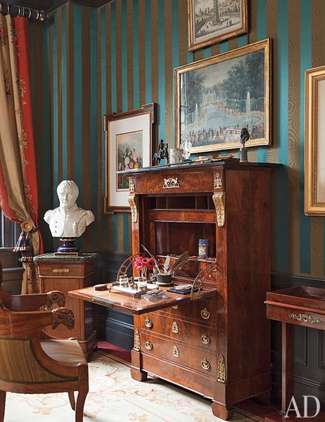 帝政時期的書桌與過往不同之處,主要在於比例大小和用途,像是桌腳的部分,以及大量古希羅時期元素的應用。主要仍繼續沿用上一時期所傳承下來的家具,像是活動寫字檯(Secrétaires à abattant)、圓弧形活動面蓋寫字檯(bureaux à cylindre)、女用寫字檯(bonheur du jour)、衣櫥(armoires)和書櫃(bibliothèques)等,皆與此時的生活密不可分。提到生活品味,我們不得不提及兩件重要樂器─豎琴與古鋼琴(帝政時代之經典,其特色在於里拉琴形踏板),帝政風格的客廳若少了此二樣,便不能稱上完整。