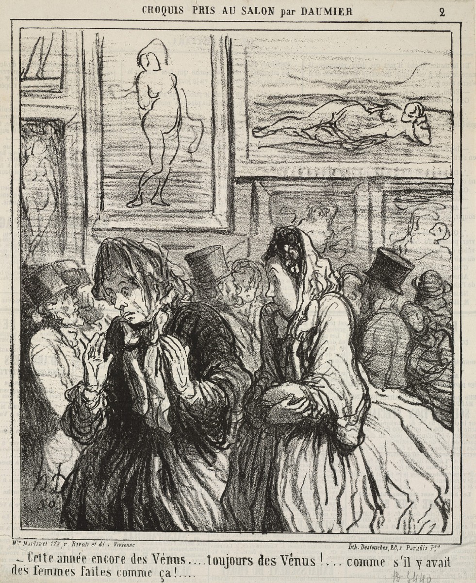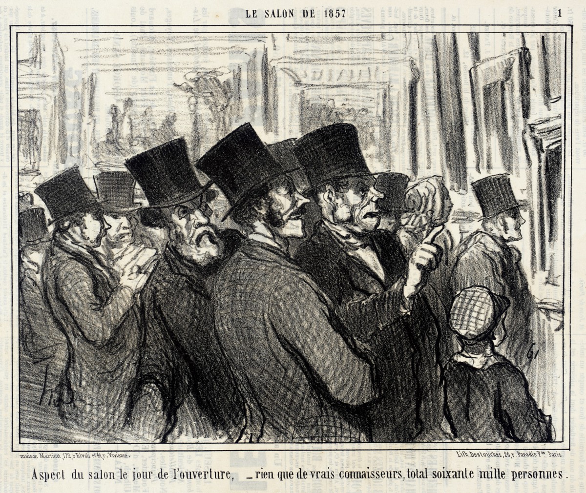 1725年,沙龍展改在羅浮宮舉辦,十二年後,更開放給公眾參觀。這種作法在法國社會可謂空前,不同的社會階級在同一空間龍蛇雜混,市井小民開始有了表述意見的機會,對藝術作品品頭論足,而且還不僅止於口頭,甚至行諸於文字,在作品下方懸吊的小冊子上抒發己見,彷彿今天的網路鄉民。瞬時間,藝術開始被不同的觀眾「消費」,他們沒有過去王室貴族美學品味的傳統束縛,可以大鳴大放。十九世紀,法國的諷刺漫畫大師杜米埃(Honoré Daumier, 1808 – 1879)在他許多的版畫作品中,便對這個現象多所嘲諷。