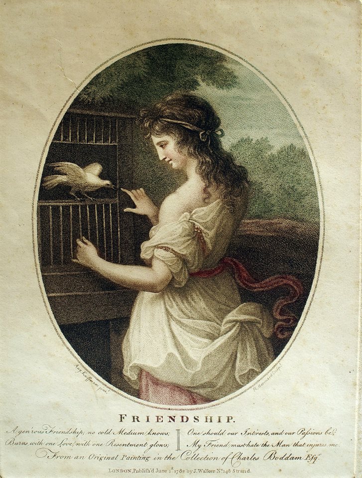 Angelica Kauffmann, (1741-1807)/ Robert-Samuel Marcuard, (1751-1792),友誼(Friendship),彩色銅版細點技法(colour stipple print),1782. 06.01。
