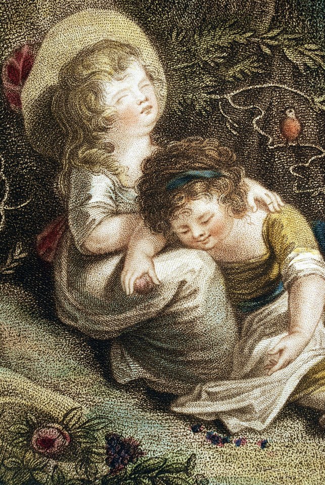 P. W.Tomkins/ Jean Marie Delatre,林中的孩子(The Children in the Wood),彩色銅版細點技法(colour stipple print),1786. 11. 20.。