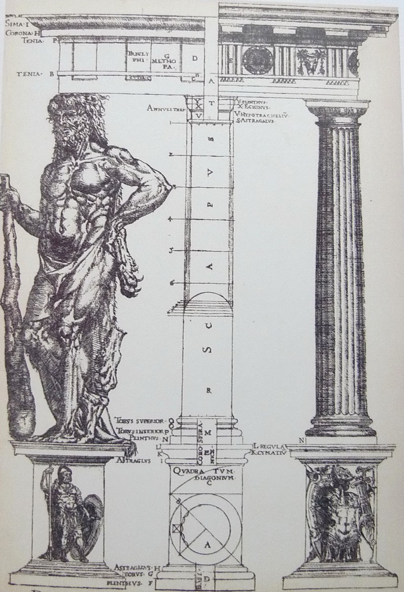 英國建築師約翰‧舒特(John Shute,?- 1563)在其論古典建築的著作【建築的基石】(The First and Chief Grounds of Architecture)中,將維特魯威的柱式,以人體比附,多立克柱式為男性。