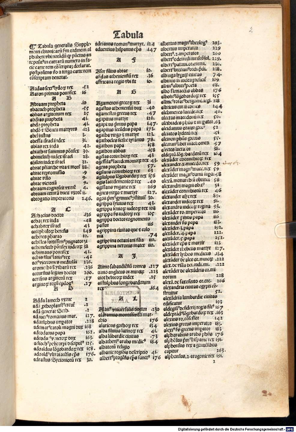 再看看1486《年鑑補遺》的第二版,我們會遇見一位被視為歐洲印刷術開創先鋒之一的印刷工匠波李諾。他在現在克羅埃西亞的拉斯托沃島(Lastovo)上出生,在威尼斯進入印刷作坊,接著一路往西,轉往維洛納(Verona)、布雷西亞與法國里昂等地,發展自己的印刷事業。史家認為他最佳的作品,是他在布雷西亞時期(1483-1491)印製出來的,包括了著名的《伊索寓言》與但丁的《神曲》。這個時候,賈柯摩也在布雷西亞,因而促成了《年鑑補遺》第二版的問世。第二版排版疏朗,索引頁兩欄,內文一欄五十行,不像威尼斯版的稠密,索引頁三欄,而內文則高達一欄五十六至六十一行,因此布雷西亞第二版的頁數以現在的統計,達781頁,比威尼斯各版足足多出二百多頁。從排版形制來看,波李諾的版本顯得美觀大方,不像如當時眾多搖籃本一樣的威尼斯版本,基於成本考量,而省下大量昂貴的紙張。這在第一本被印製出來的《四十二行聖經》身上,也可見到同樣的處理方式,古騰堡原本計畫印製三十六行的聖經,便因成本問題而作罷。