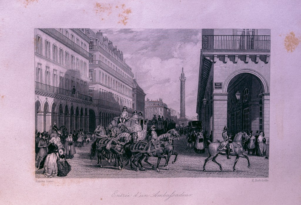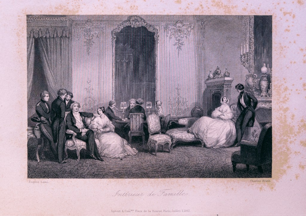 名稱:【巴黎之冬】 (Un Hiver á Paris)一冊。IV+283頁。內含1張木刻書名頁,18張Eugène Lami繪製,L. Stock等刻製的全頁鋼版插圖與Daumier, Gavarni, Charlet等繪製的許多硬木木刻內文插圖。