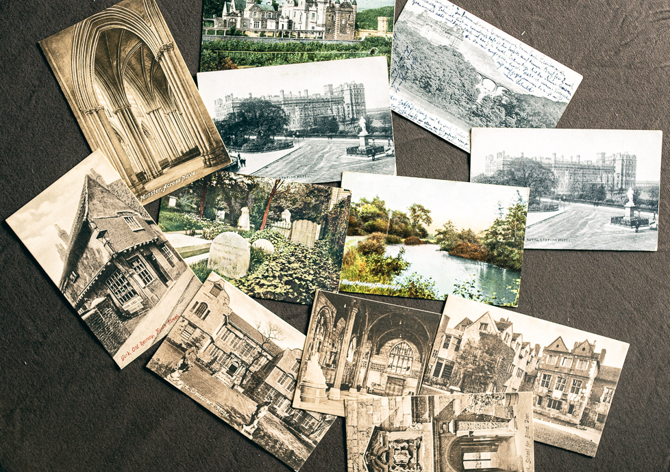 我們收藏的這一批明信片,皆為英國各地的景觀,大多為黃金時期留下來的,少部份到1950年代。這種風景明信片不僅是當時明信片的主流,也是收藏的熱門標的。他們提供了當時建築、街道,甚至市鎮變遷的一手資料,許多景觀今天可能都已消失,或樣貌已有變化。這些明信片可以反應出當時的社會文化,以及旅行的時尚喜好,甚至那些明信片上的文字,也能讓我們觸及那個時代人們的心態。
