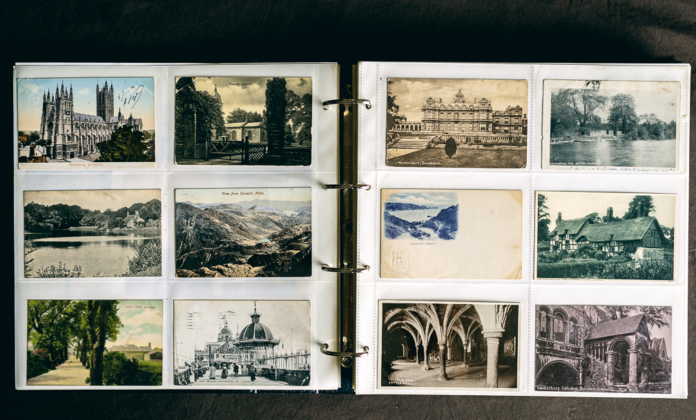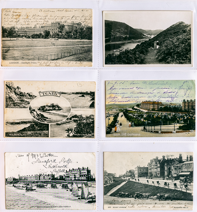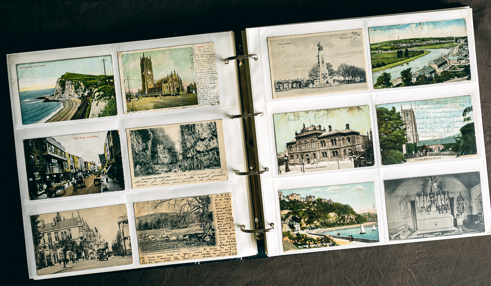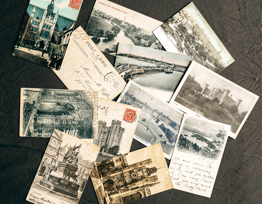 我們收藏的這一批明信片,皆為英國各地的景觀,大多為黃金時期留下來的,少部份到1950年代。這種風景明信片不僅是當時明信片的主流,也是收藏的熱門標的。他們提供了當時建築、街道,甚至市鎮變遷的一手資料,許多景觀今天可能都已消失,或樣貌已有變化。這些明信片可以反應出當時的社會文化,以及旅行的時尚喜好,甚至那些明信片上的文字,也能讓我們觸及那個時代人們的心態。
