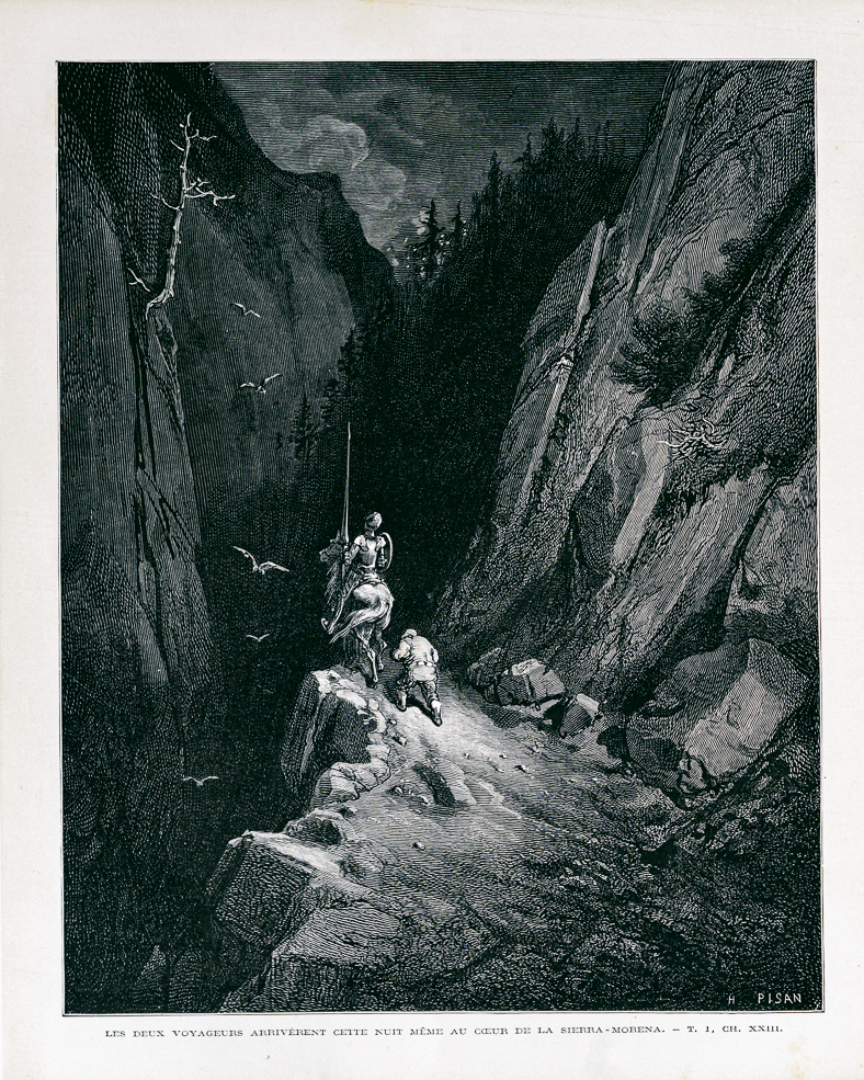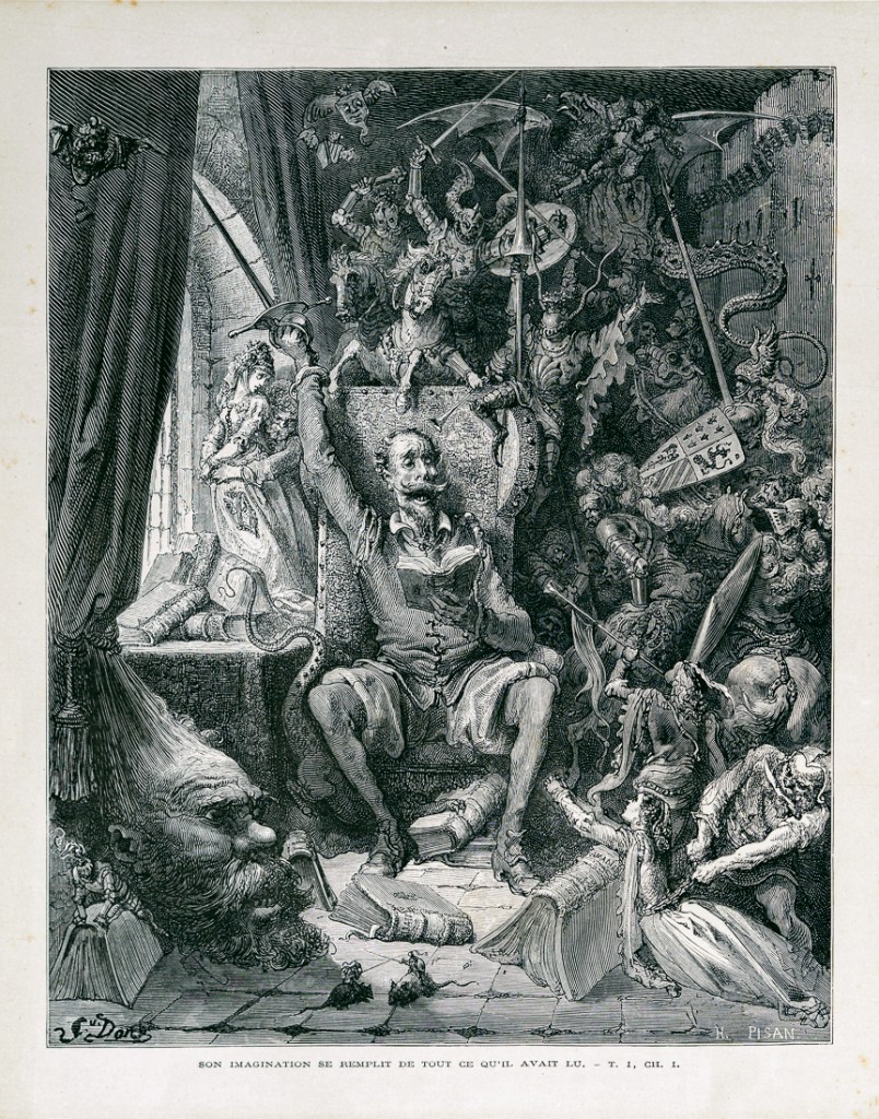 【唐吉訶德】的強烈戲劇效果,成為法國1826年成立的出版社 Librairie Hachette et Cie(今天法國最大的出版集團)精心打造,和當時插畫大師古斯塔夫·多雷合作的系列世界名著最佳選項之一。除了【唐吉訶德】外,這項計畫還包括了1861年但丁的【神曲】,1866年的【聖經】,1867年拉封丹的【寓言故事】,1879年阿里奧斯托(Ludovico Ariosto, 1474-1533)的【瘋狂奧蘭多】,還有多部如莎士比亞劇作、米爾頓【失樂園】、拉伯雷【巨人傳】等作品。在這些繪製工作中,多雷如脫韁野馬似的幻想力找到了合適的舞台。