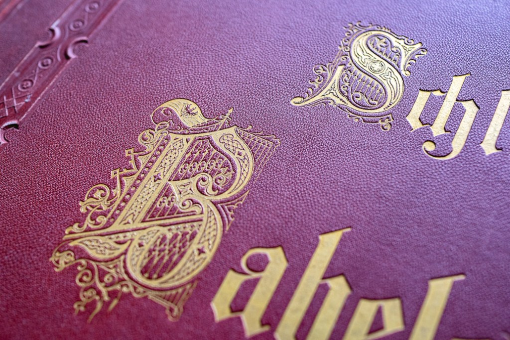 1872年,為了慶祝巴伯斯貝格堡的主人威廉成為德意志帝國的第一任皇帝,恩斯特與孔恩出版社以第一版的印版,重新印製出版,同時配上由柏林愛德華・亨奈爾(Eduard Haenel)印刷作坊製作,飾有皇室紋章的石版裝飾框線。今天,就連1872年第二版的完整版本,亦十分罕見,多只有少量的單頁在流通。我們這套保有原來赭紅色壓花的收藏畫夾,以及巴伯斯貝格堡的花體燙金字母。