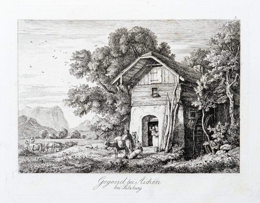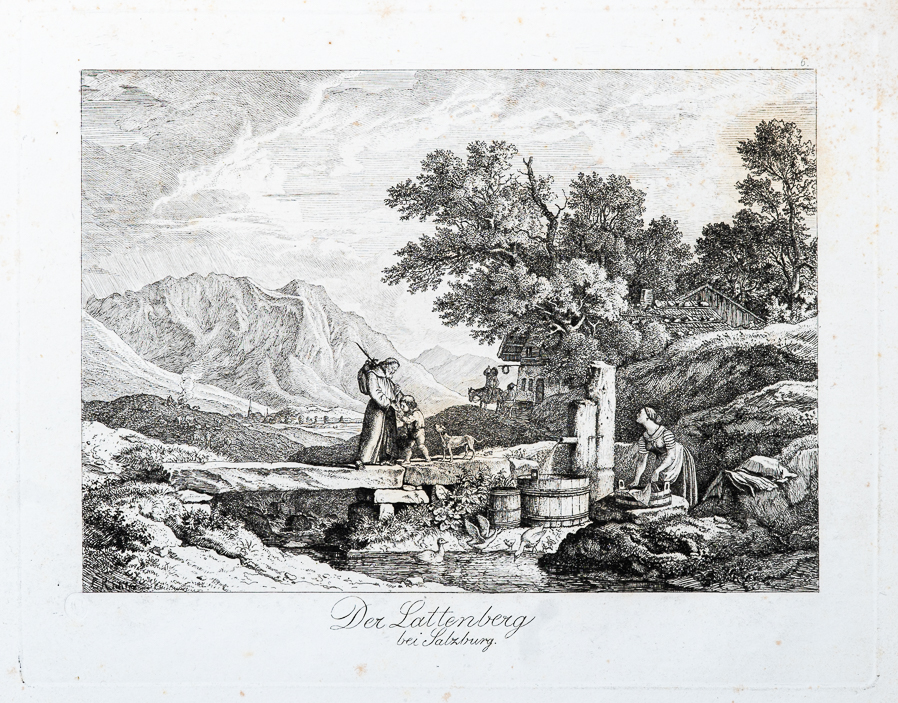 【薩爾茲堡近郊美景】六幅蝕刻作品,可說是德國後期浪漫主義重要畫家阿德里安·路德維希·李希特(Adrian Ludwig Richter, 1803 – 1884)的風格奠基之作。李希特也因他的書籍插畫成就,成為當時德國家喻戶曉的藝術家。