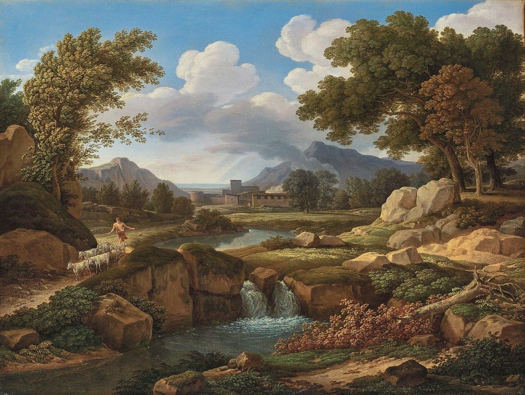 德國畫家與版畫家約翰・萊因哈特(Johann Christian Reinhart, 1761 – 1847)被視為德國浪漫主義風景畫的奠基人物,不過,他的黃金時期卻是在義大利開始的。在十八及十九世紀之交,待過義大利的德國藝術家,許多都是以版畫為主要創作媒材,萊因哈特正其中翹楚。義大利從文藝復興後,成為藝術家朝訪的勝地,德國浪漫主義藝術家們,幾乎都在這裡或長或短停留過,而萊因哈特不僅在此成家,亦在這建立起自己的藝術名聲,1829年,巴伐利亞國王路德維希一世(Ludwig I, 1786 – 1868)便委託他繪製四幅巨大的義大利風景畫(約170 x 270 公分),可以想見萊因哈特在當時的名氣。