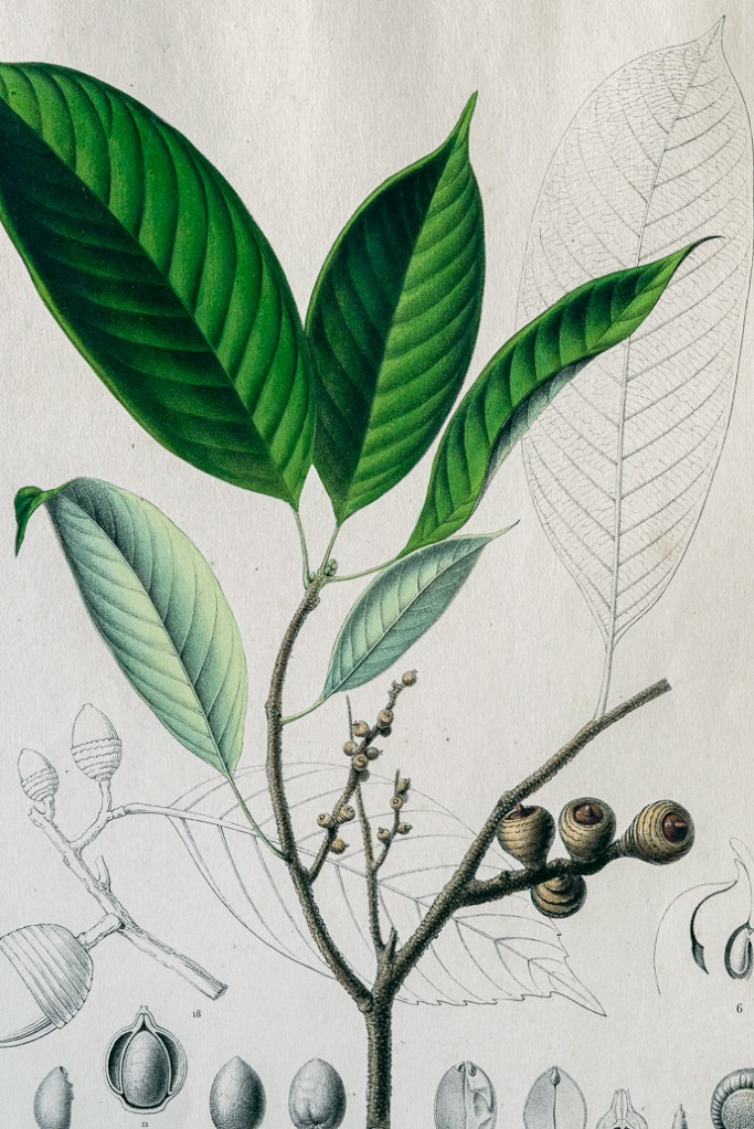 名稱:銀絨櫟(Quercus Argentata),圖47,出自:【荷蘭海外屬地自然歷史紀要】(Verhandelingen over de natuurlijke geschiedenis der Nederlandsche overzeesche bezittingen by C.J. Temminck, published in Leiden by S. en J. Luchtmans en C.C. van der Hoek)。