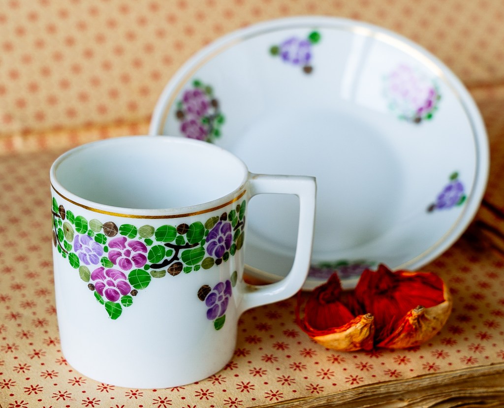 名稱:新藝術葡萄花飾濃縮咖啡杯。